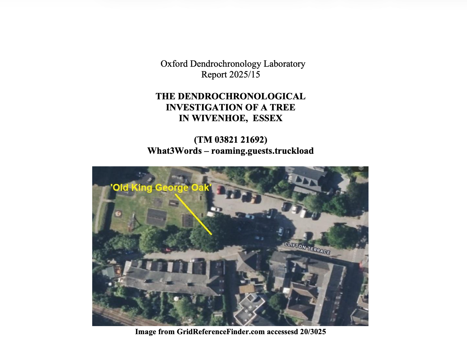 A recent dendrochronological investigation into the 'Old King George Oak' in Wivenhoe analysed three core samples to determine the tree's history and condition.